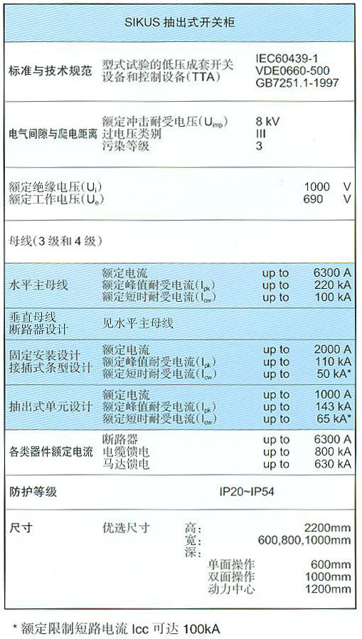 進線電流至6300A,抽屜單元額定電流****1000A,適用于各種功率等級,從動力中心(6300A)通過主配電設備和分配電設備至馬達控制中心。防護等級:IP20-IP54.